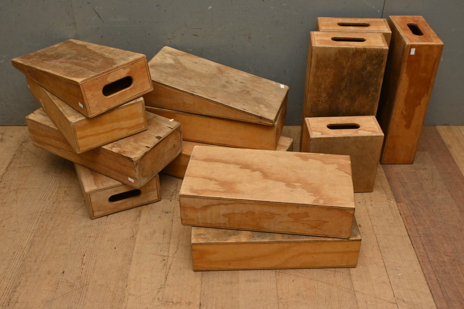 A COLLECTION OF CHILDREN'S TIMBER BUILDING BLOCKS (A/F) (12H X 48W X 24D CM) (LEONARD JOEL DELIVERY SIZE: LARGE)