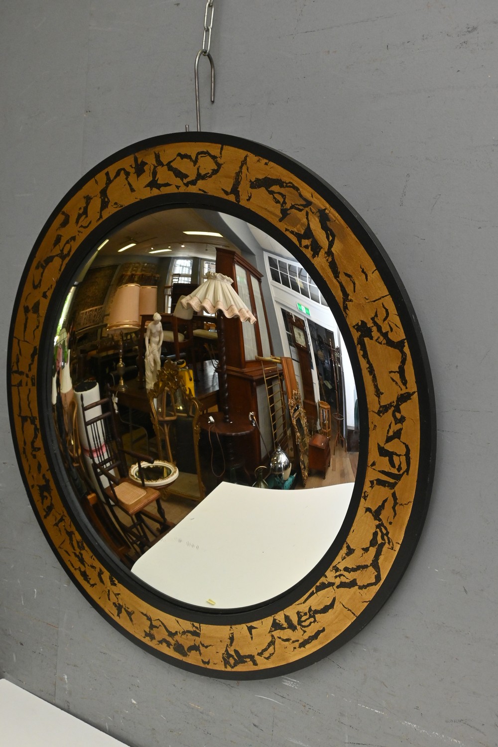 A TIMBER FRAMED CONVEX WALL MIRROR (D80 CM) (LEONARD JOEL DELIVERY SIZE: LARGE)