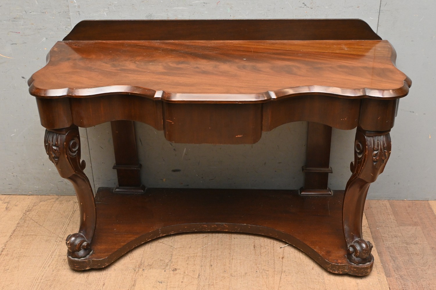 A MAHOGANY SINGLE DRAWER HALL TABLE (A/F) (77H X 123W X 53D CM) (LEONARD JOEL DELIVERY SIZE: X-LARGE)