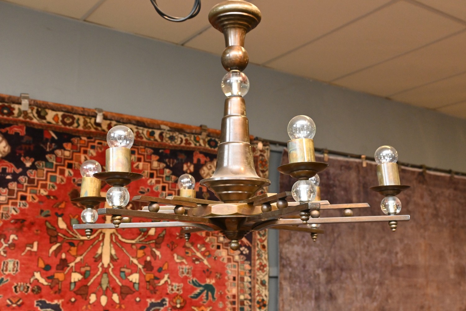 A 1945 FRENCH BRONZE MODERNIST SIX BRANCH CHANDELIER BY SERGE MOUILLE ( 73H X 65 DIAMETER CM) (LEONARD JOEL DELIVERY SIZE: LARGE)