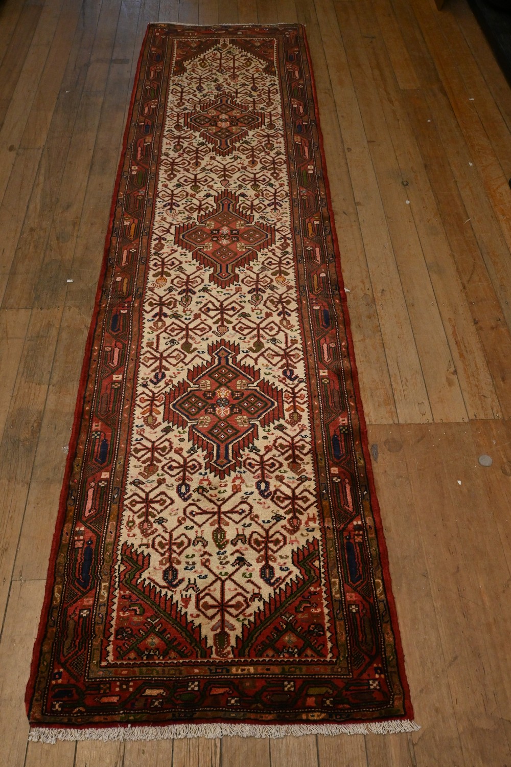 A PERSIAN HAMEDAN HALL RUNNER. 100% DENSE HANDKNOTTED WOOLEN PILE. SIZE: 295 X 86 CM. ORIGIN: IRAN. RRP: $1300. DOCUMENTATION OF AUTHENTICITY INCLUDED.