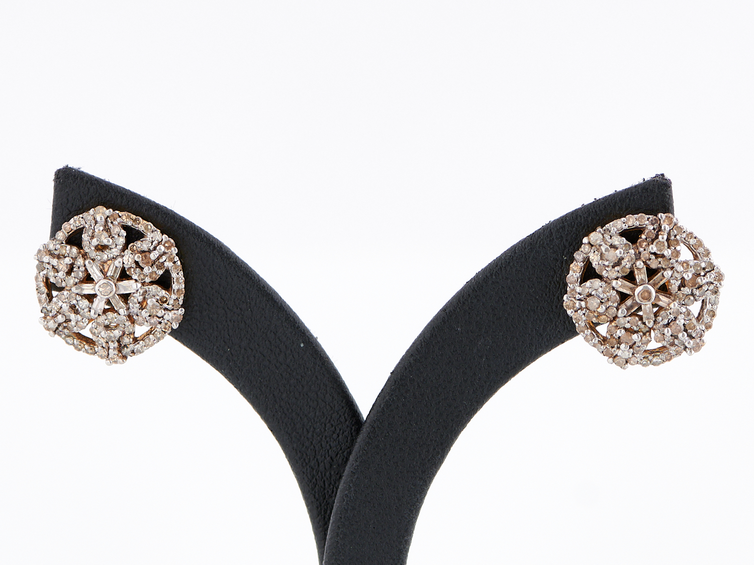 A PAIR OF DIAMOND CLUSTER STUD EARRINGS IN GOLD PLATED STERLING SILVER, TO POST AND BUTTERFLY FITTINGS
