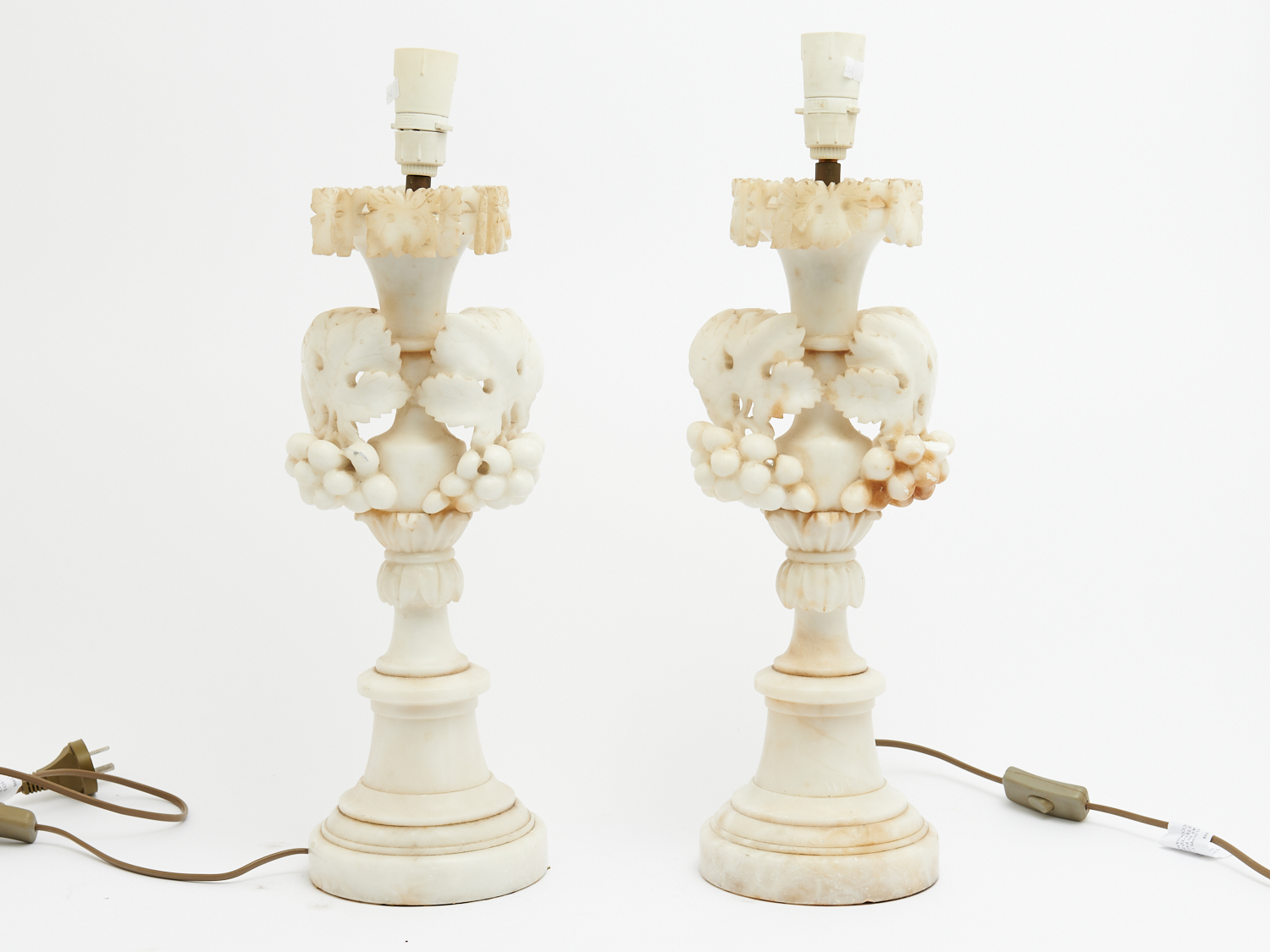 A PAIR OF CARVED ALABASTER LAMP BASES H.54CM, LEONARD JOEL LOCAL DELIVERY: MEDIUM