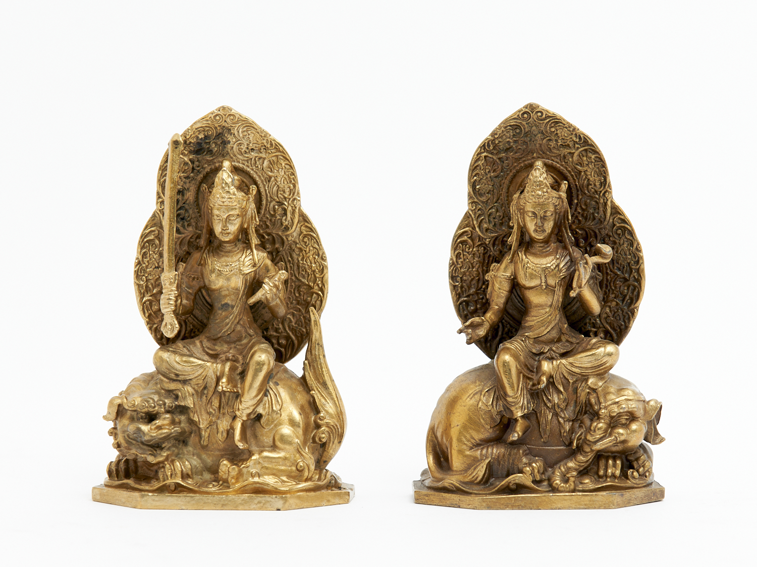 A PAIR OF CAST BRASS DEITIES H.13CM, LEONARD JOEL LOCAL DELIVERY: SMALL