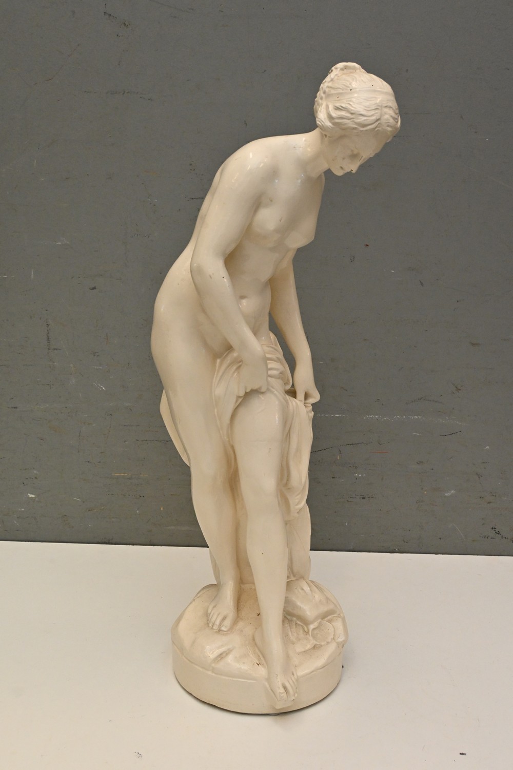 A PLASTER STATUETTE OF A MAIDEN (A/F) (67H CM) (LEONARD JOEL DELIVERY SIZE: LARGE)
