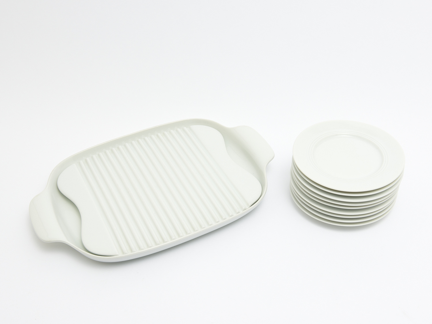 A COLLECTION OF WHITE PORCELAIN TABLEWARE INCLUDING LARGE HUTSCHENREUTHER CARVING PLATE, LEONARD JOEL LOCAL DELIVERY: SMALL