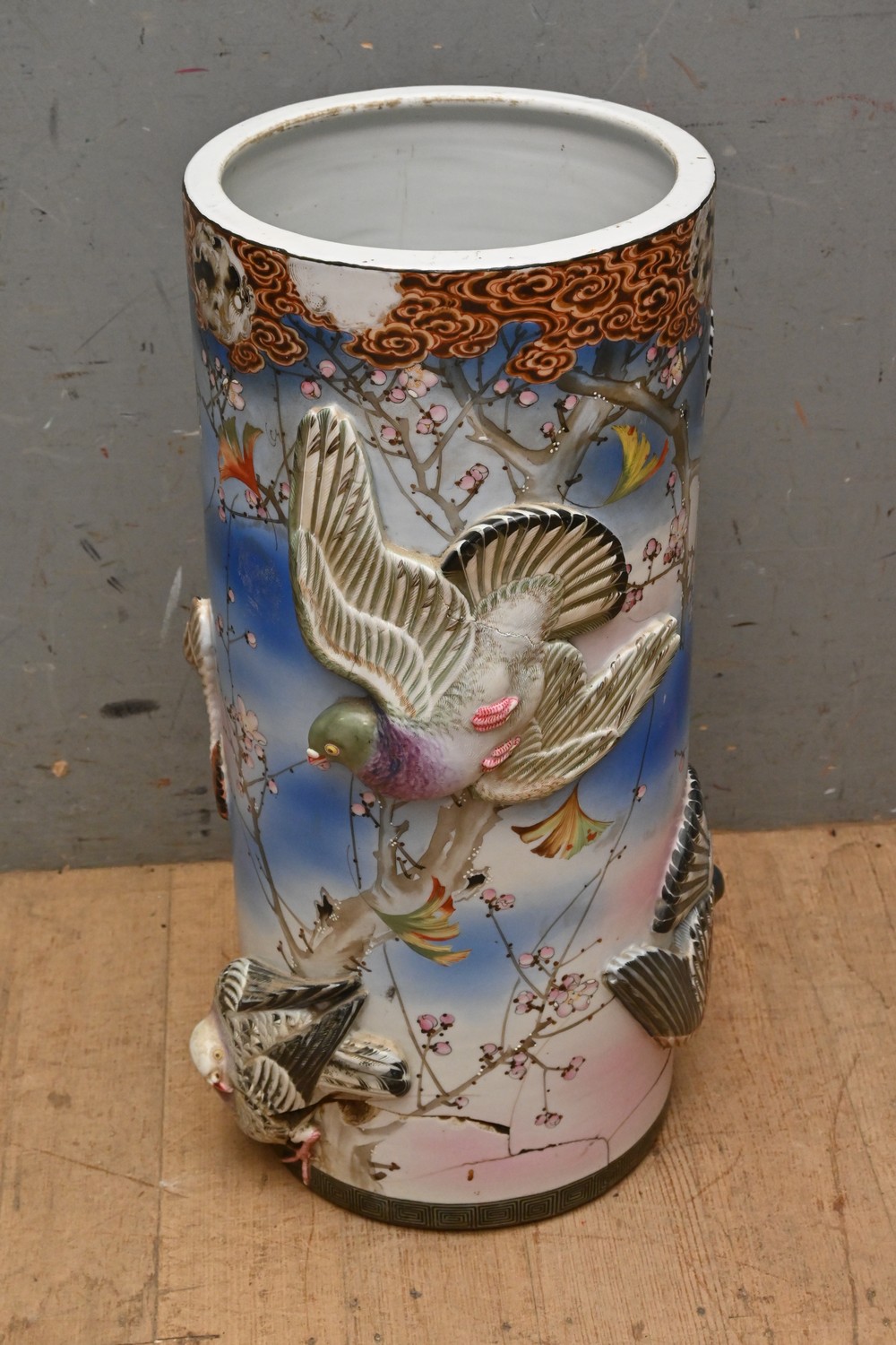 A JAPANESE SETO FLOOR VASE (A/F) - SIGNS OF REPAIRS (H60 X D32 CM) (LEONARD JOEL DELIVERY SIZE: LARGE)