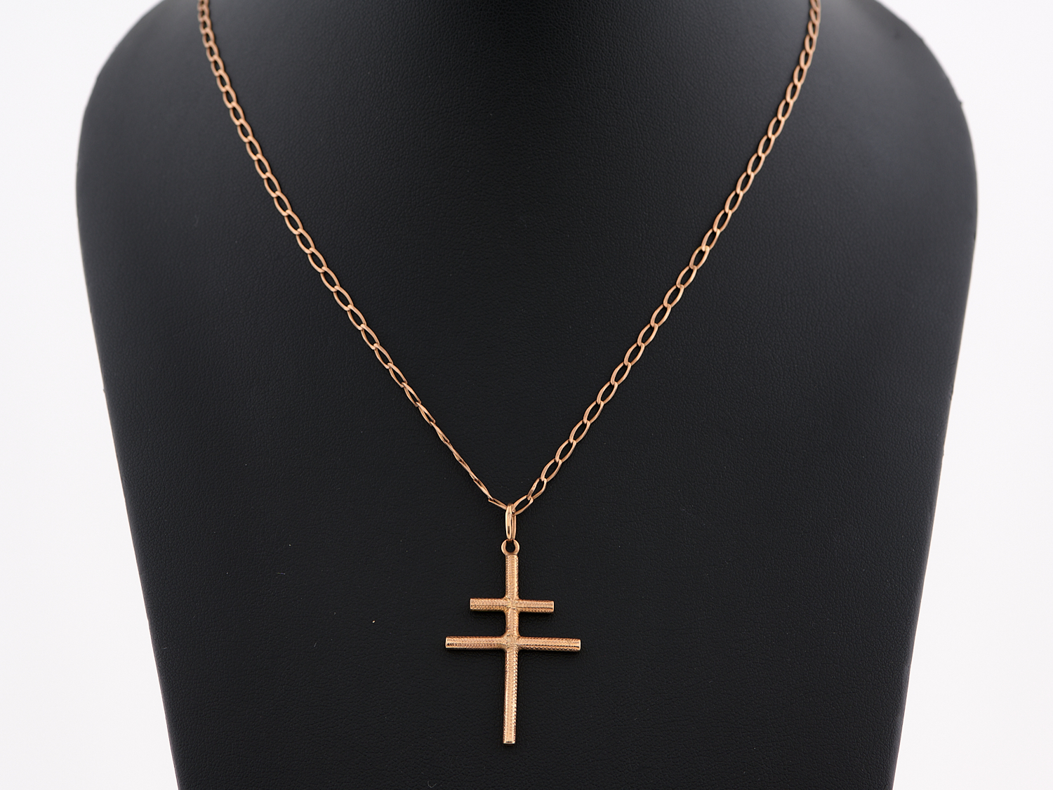 A CROSS PENDANT NECKLACE IN 9CT GOLD, LENGTH 525MM, 6.4GMS