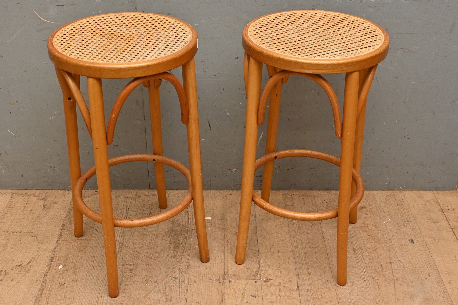 A PAIR OF BENTWOOD BARSTOOLS (70H X 38D CM) (LEONARD JOEL DELIVERY SIZE: LARGE)