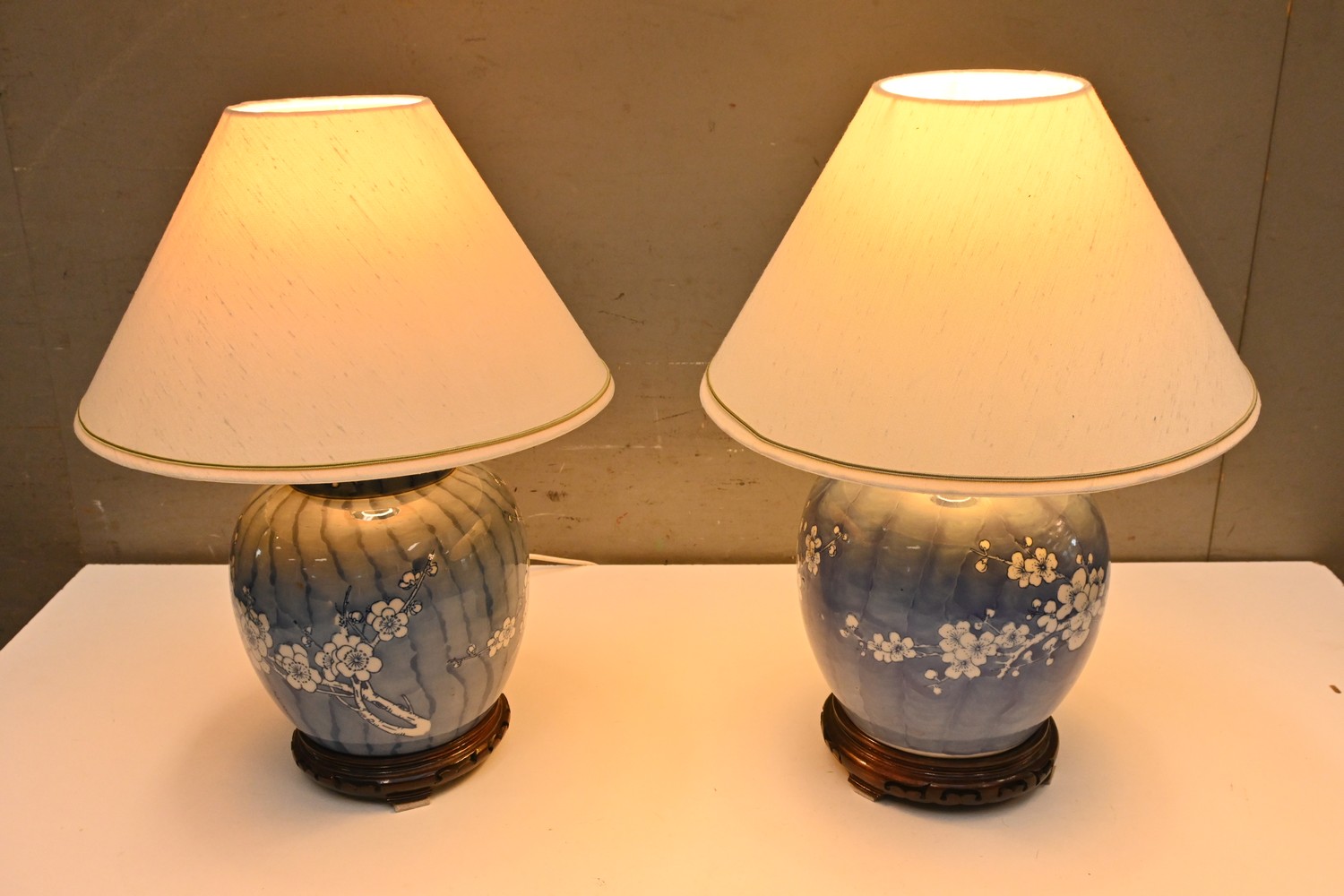 A PAIR OF CHINESE CERAMIC TABLE LAMPS (50H X 35 DIAMETER CM) (LEONARD JOEL DELIVERY SIZE: LARGE)