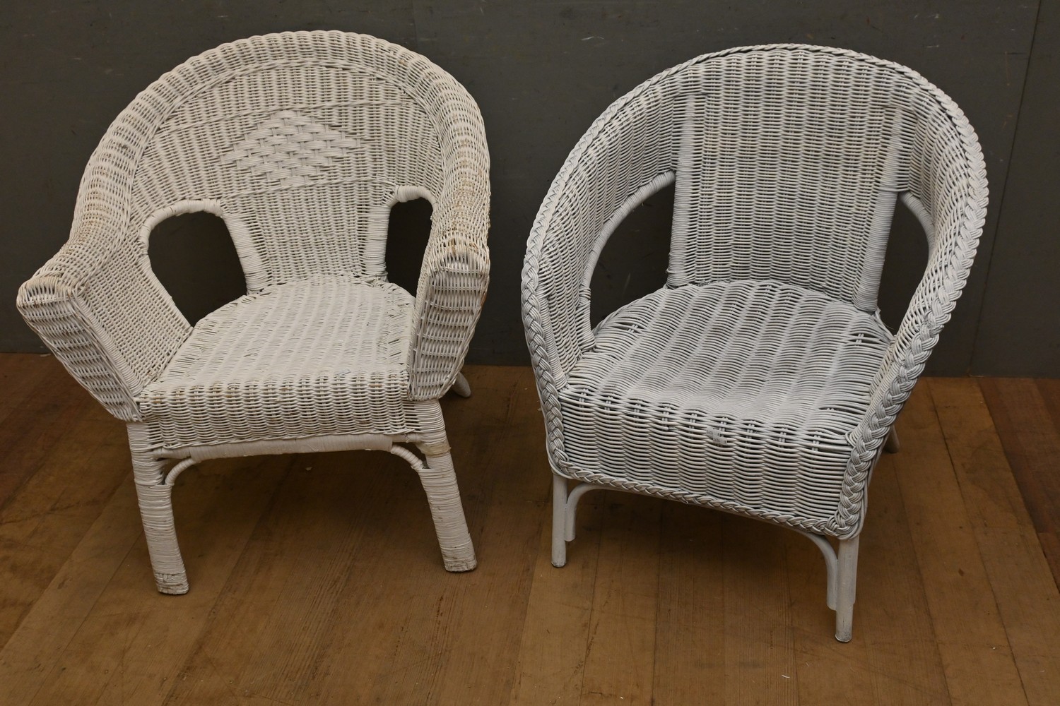 TWO WHITE CANE CHAIRS (A/F) ( 78H X 73W X 66D CM) (LEONARD JOEL DELIVERY SIZE: LARGE)