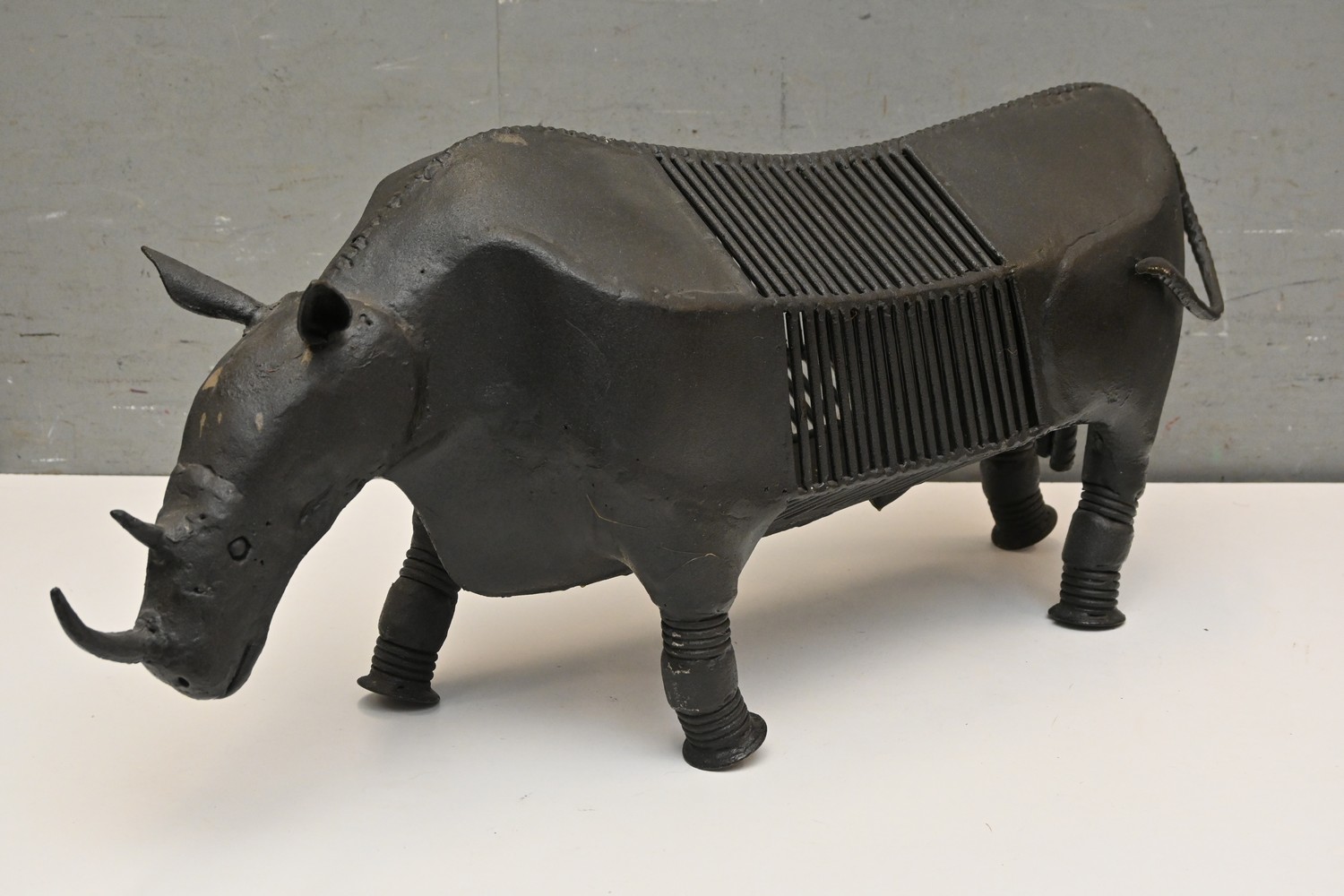 A LARGE STATUE OF A RHINO ( 38H X 30W X 91D CM) (LEONARD JOEL DELIVERY SIZE: X-LARGE)