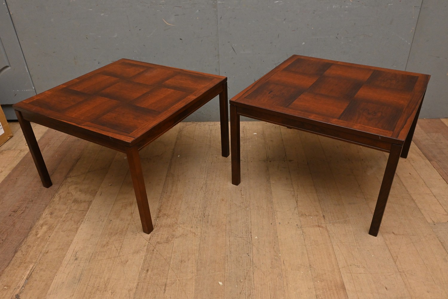 A PAIR OF PATCHWORK COFFEE TABLES FOR HEGGEN, NORWAY (A/F) (47H X 70W X 70D CM) (LEONARD JOEL DELIVERY SIZE: X-LARGE)