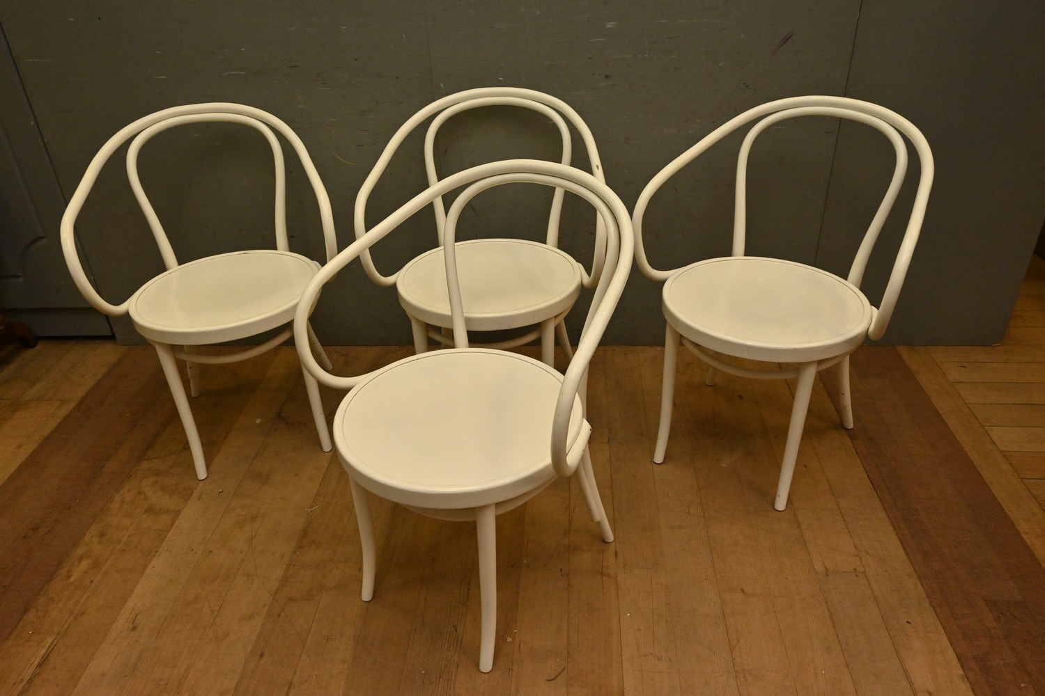 A SET OF FOUR THONET BENTWOOD DINING CHAIRS (A/F) (85H X 60W X 60D CM) (LEONARD JOEL DELIVERY SIZE: X-LARGE)