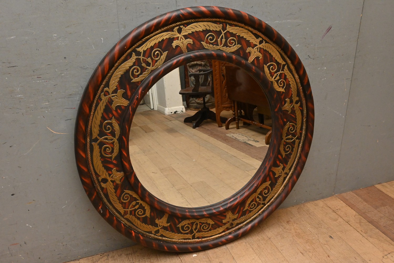 A LARGE DECORATIVE CIRCULAR WALL MIRROR (110D CM) (LEONARD JOEL DELIVERY SIZE: LARGE)