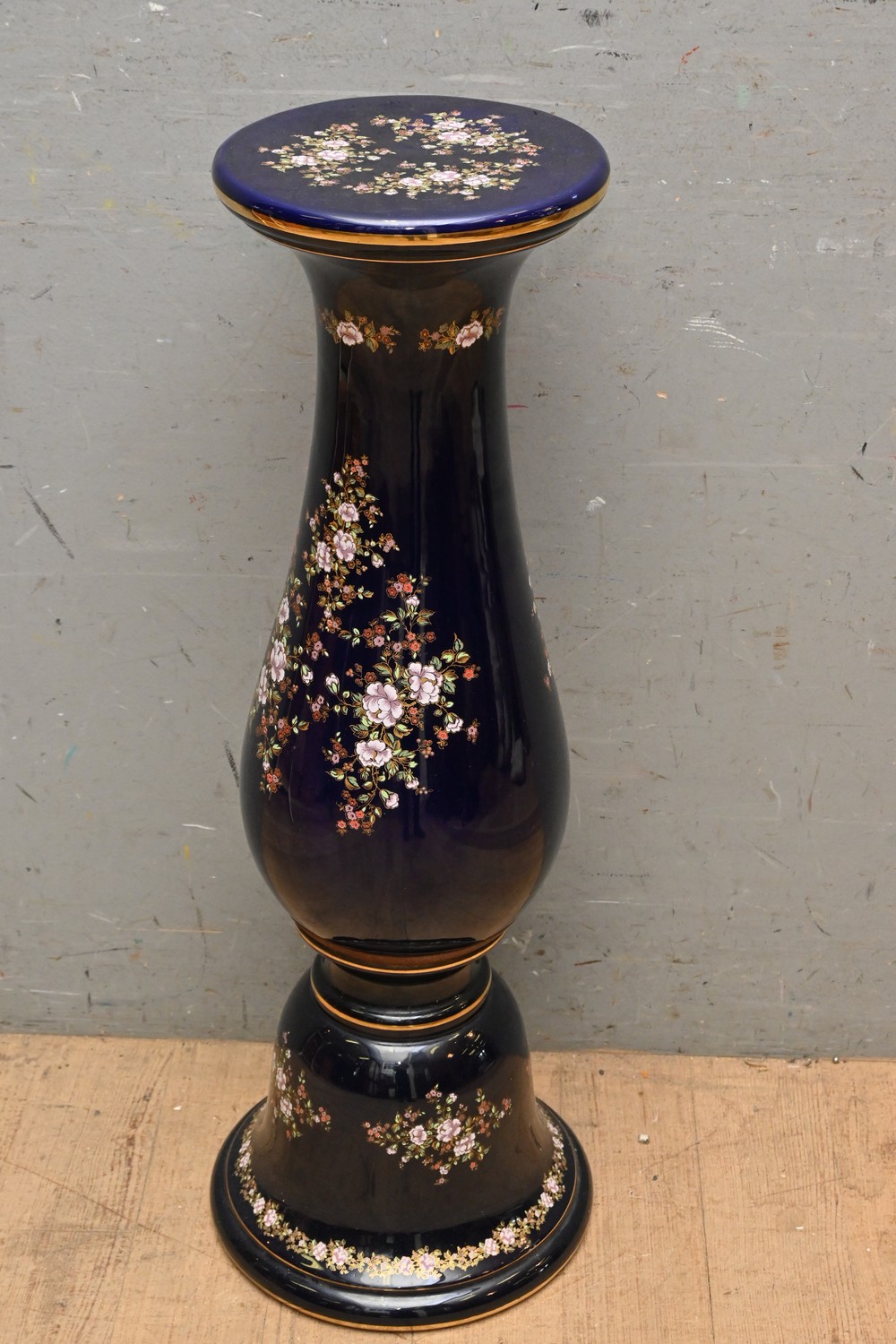 A COBALT BLUE AND FLORAL PEDESTAL BY STILE SEVRES (A/F) ( 82H X 25 DIAMETER CM) (LEONARD JOEL DELIVERY SIZE: LARGE)