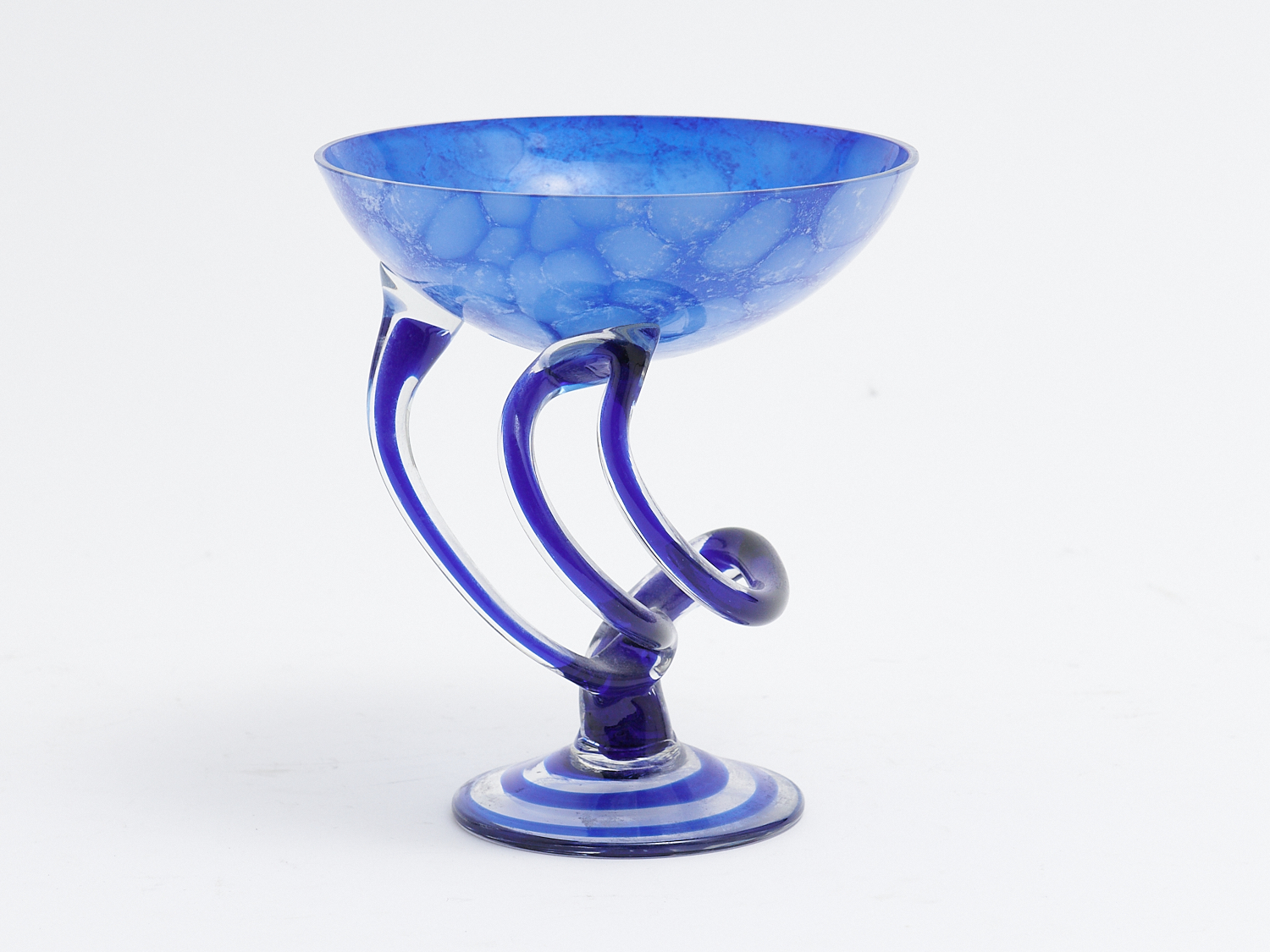 A BLUE GLASS COMPORT H.17CM, LEONARD JOEL LOCAL DELIVERY: SMALL