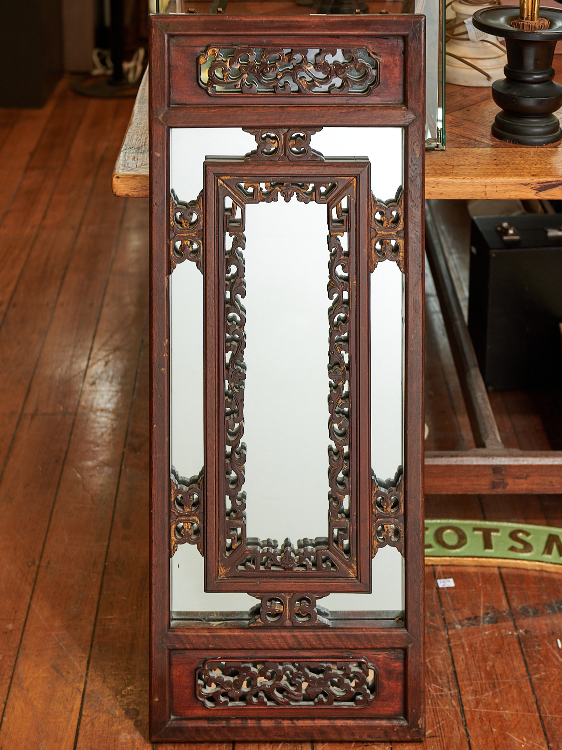 A CHINESE WOODEN FRAMED MIRROR H.100CM X W.38CM, LEONARD JOEL LOCAL DELIVERY: MEDIUM