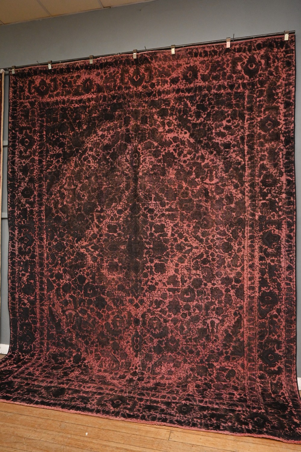 A LARGE AND DECORATIVE PERSIAN VINTAGE OVERDYE TABRIZ CARPET, 100% VINTAGE WOOLEN PILE HANDKNOTTED IN TABRIZ NORTHWEST PERSIA. EXTREMELY POPULAR WITH DESIGNERS & INTERIOR DECORATORS. SIZE: 383X 291 CM ORIGIN: PERSIA RRP - $5,500 DOCUMENTATION OF AUTHENTICITY INCLUDE.