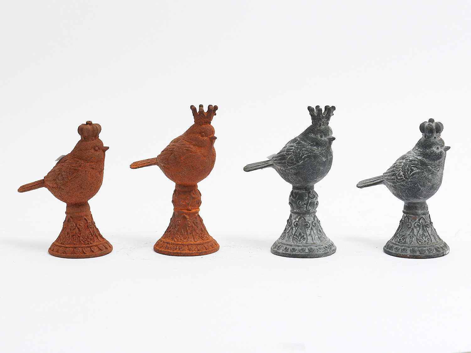 FOUR CAST IRON BIRDS H.17CM, LEONARD JOEL LOCAL DELIVERY: SMALL