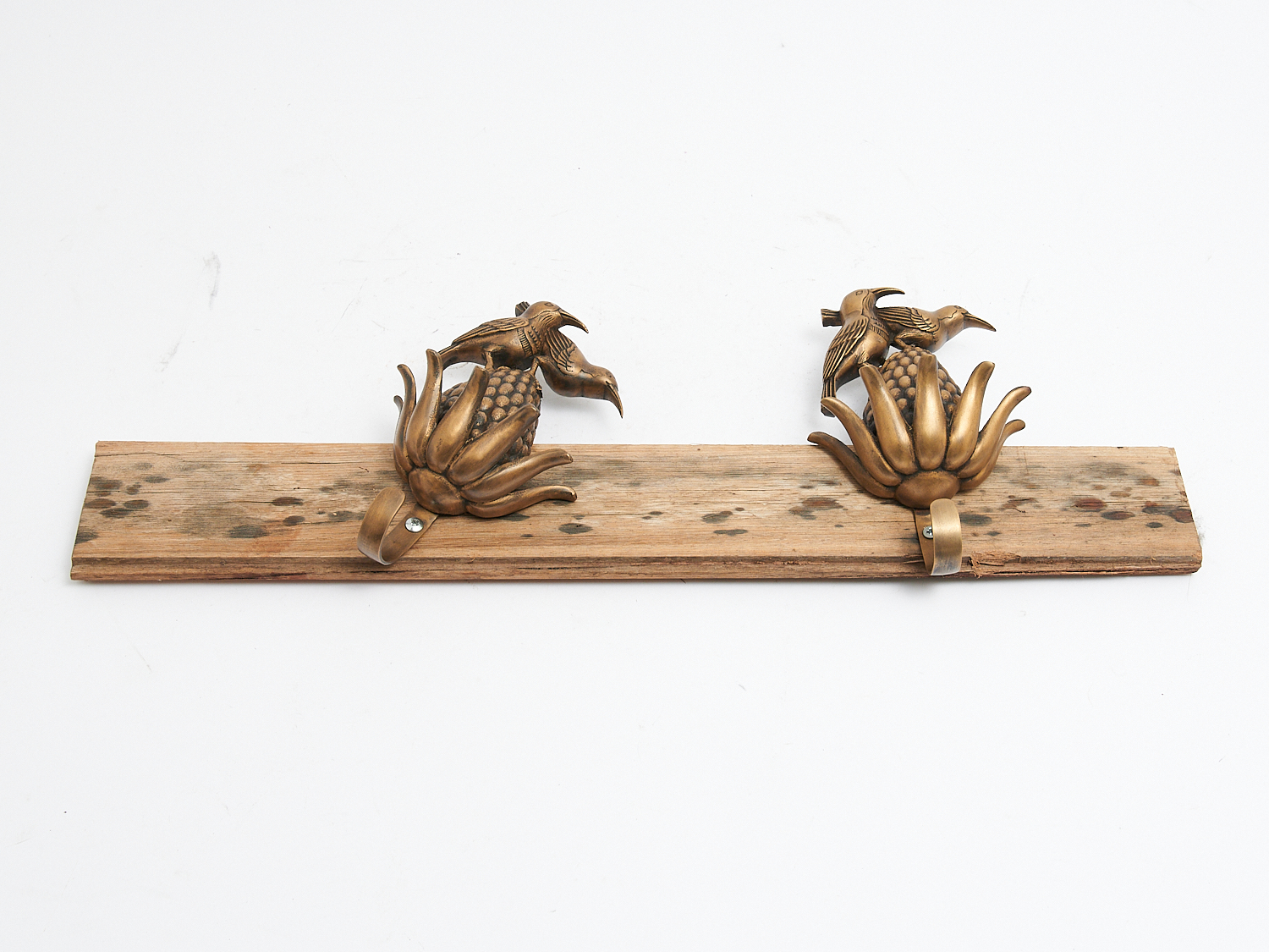 A METAL AND WOOD COAT HOOK RAIL L. 63CM, LEONARD JOEL LOCAL DELIVERY: MEDIUM