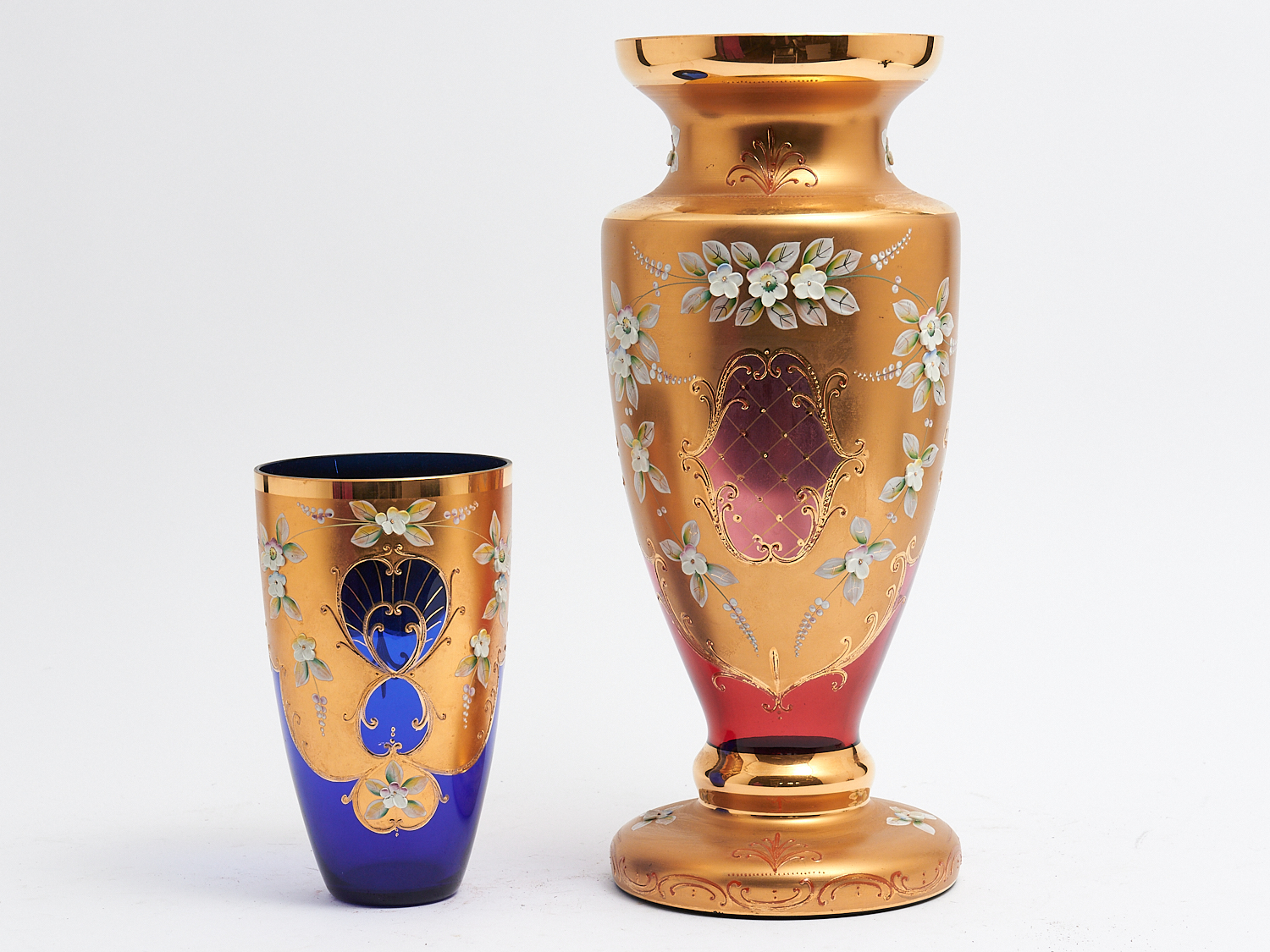 TWO 19TH CENTURY BOHEMIAN GILT AND ENAMEL DECORATED GLASS VASES H.40CM (LARGEST), LEONARD JOEL LOCAL DELIVERY: MEDIUM