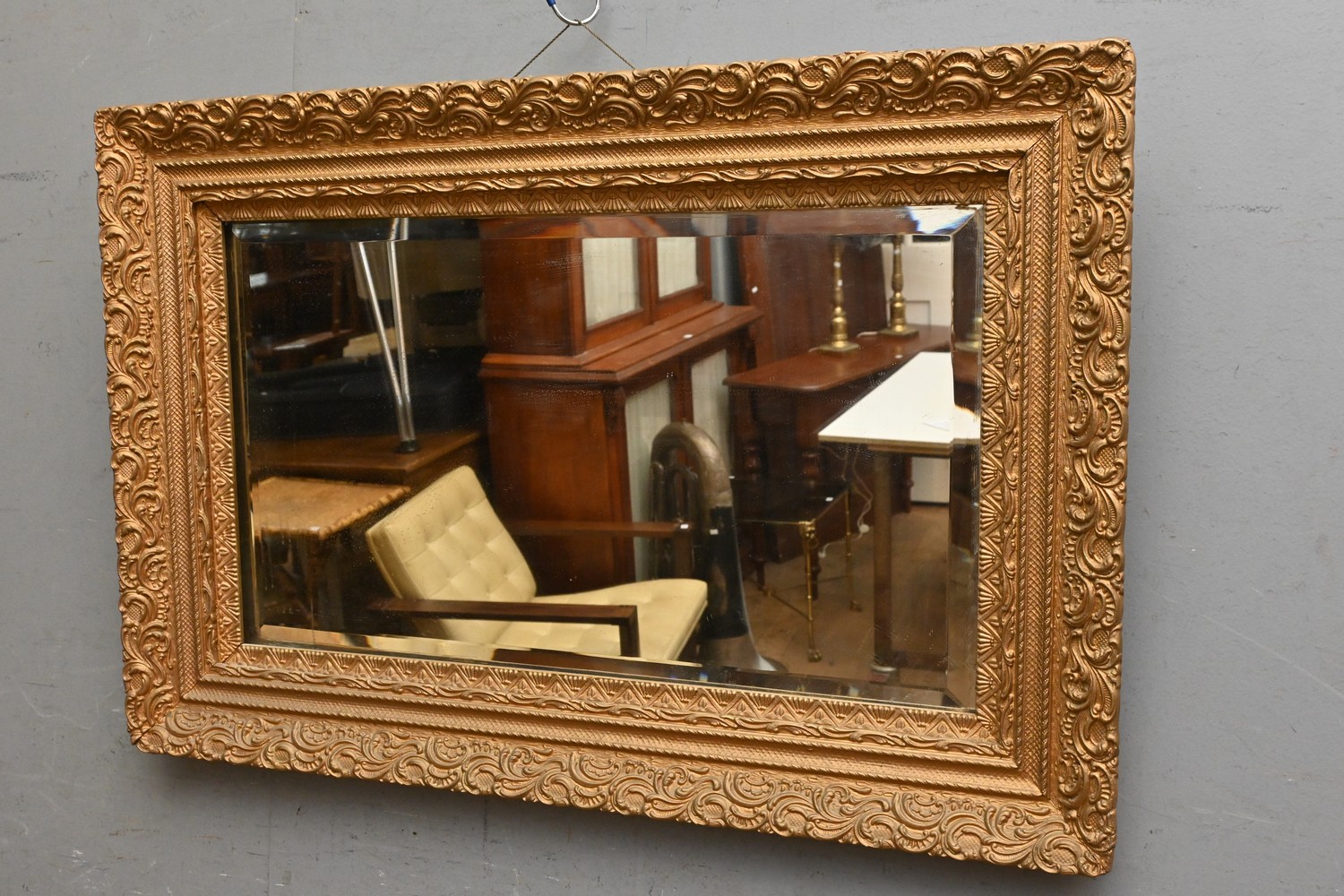 A GILT WOODEN BEVEL EDGE MIRROR (A/F) ( 58H X 86D CM) (LEONARD JOEL DELIVERY SIZE: LARGE)