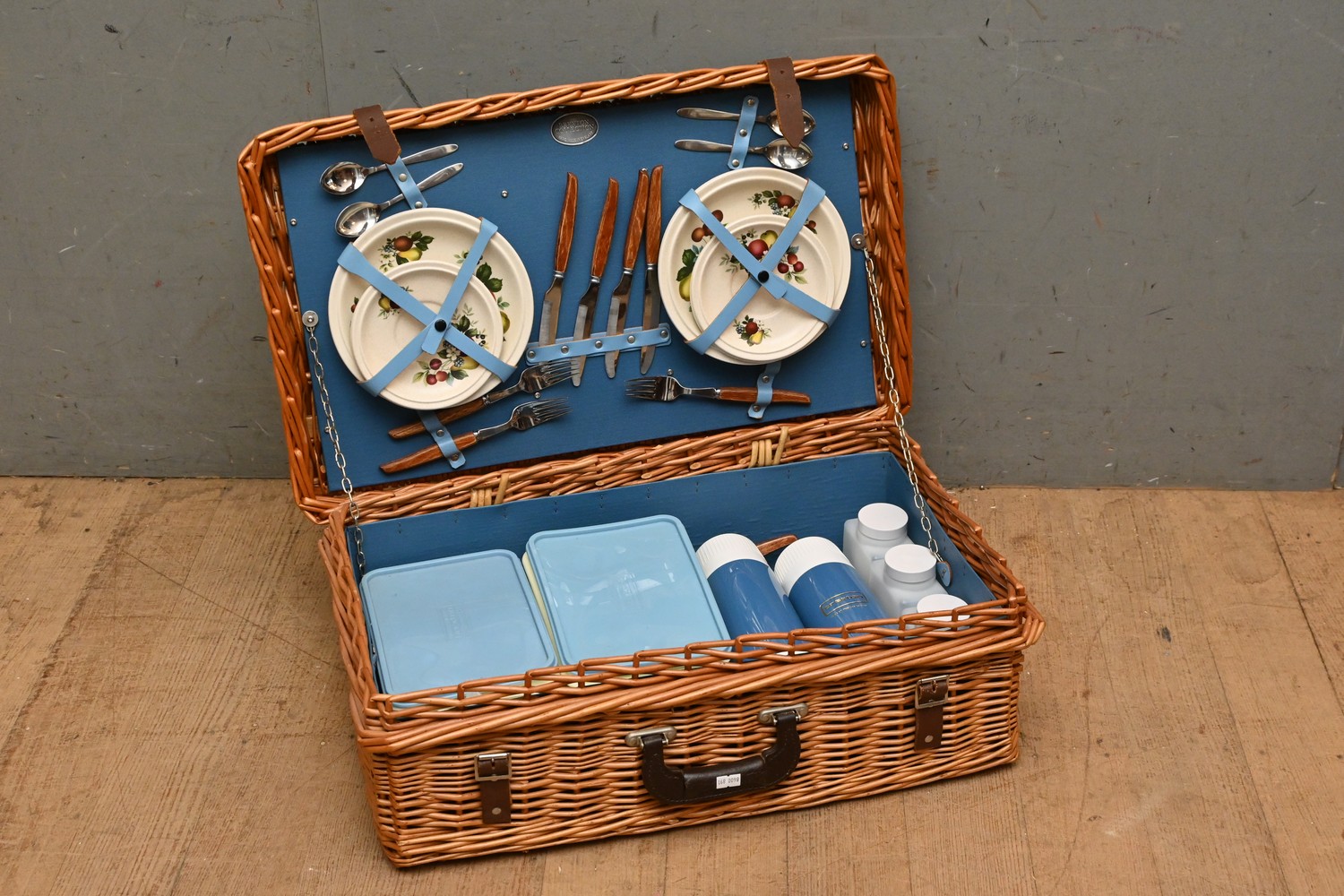A CANE CASED TRAVELLING PICNIC SET (A/F) ( 22H X 63W X 40D CM) (LEONARD JOEL DELIVERY SIZE: MEDIUM)