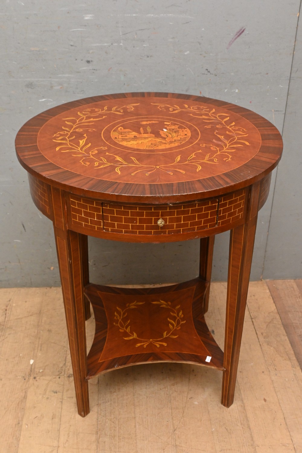 A CIRCULAR TOP SIDE TABLE (A/F) ( 77H X 67 DIAMETER CM) (LEONARD JOEL DELIVERY SIZE: LARGE)