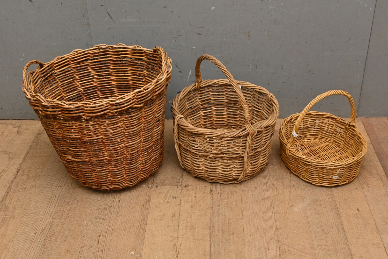 COLLECTION OF THREE VINTAGE WOVEN CANE BASKETS ( 43H X 52 DIAMETER CM) (LEONARD JOEL DELIVERY SIZE: LARGE)
