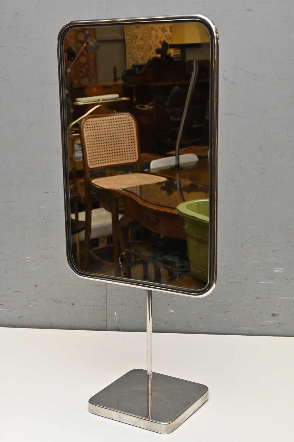 A VINTAGE SOLID NICKEL PLATED BRASS SHOP DISPLAY MIRROR ( 80H X 35W X 20D CM) (LEONARD JOEL DELIVERY SIZE: LARGE)