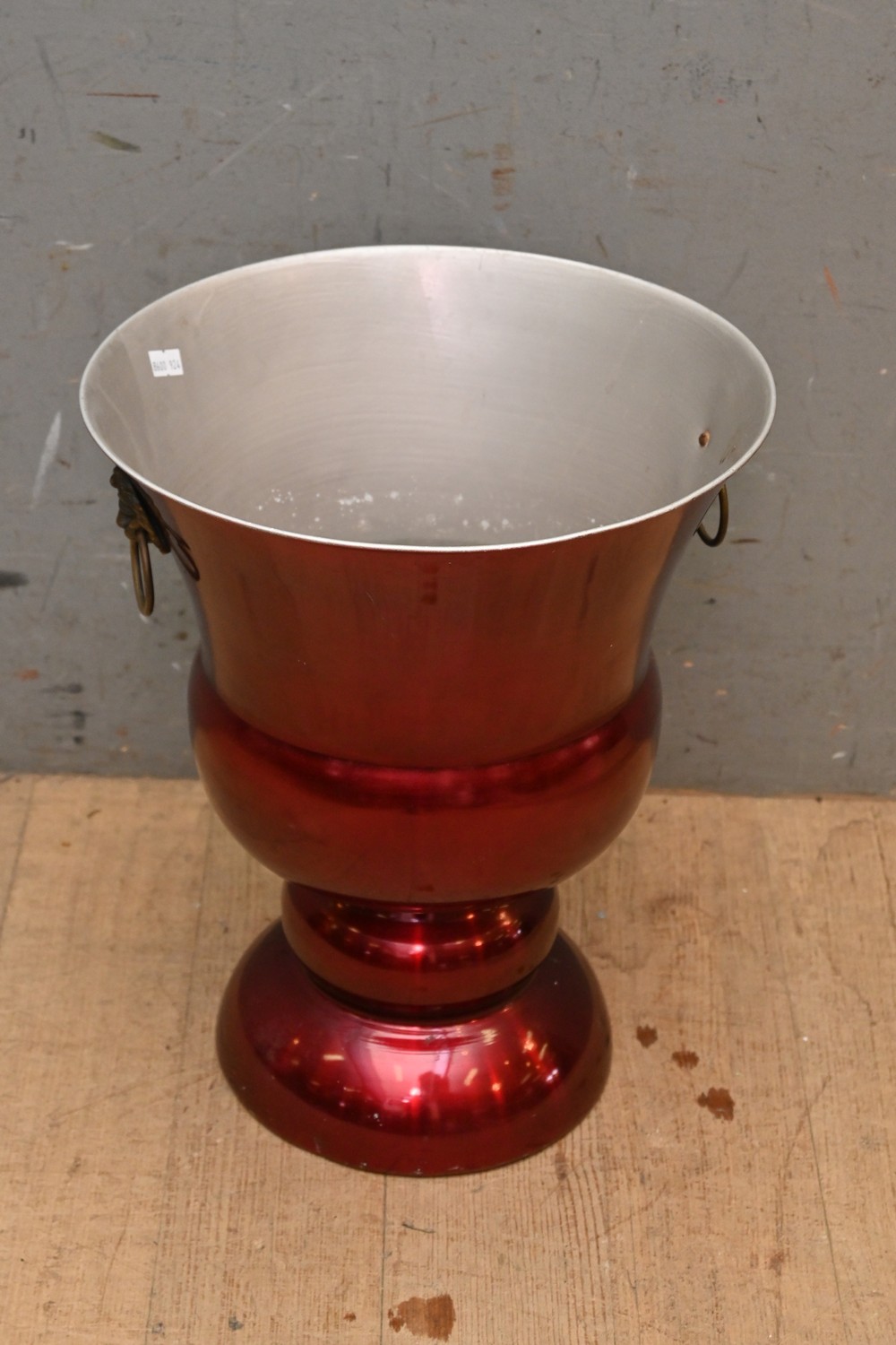 A RETRO ANODISED RED PLANTER (A/F) (H39 X D31 CM) (LEONARD JOEL DELIVERY SIZE: MEDIUM)