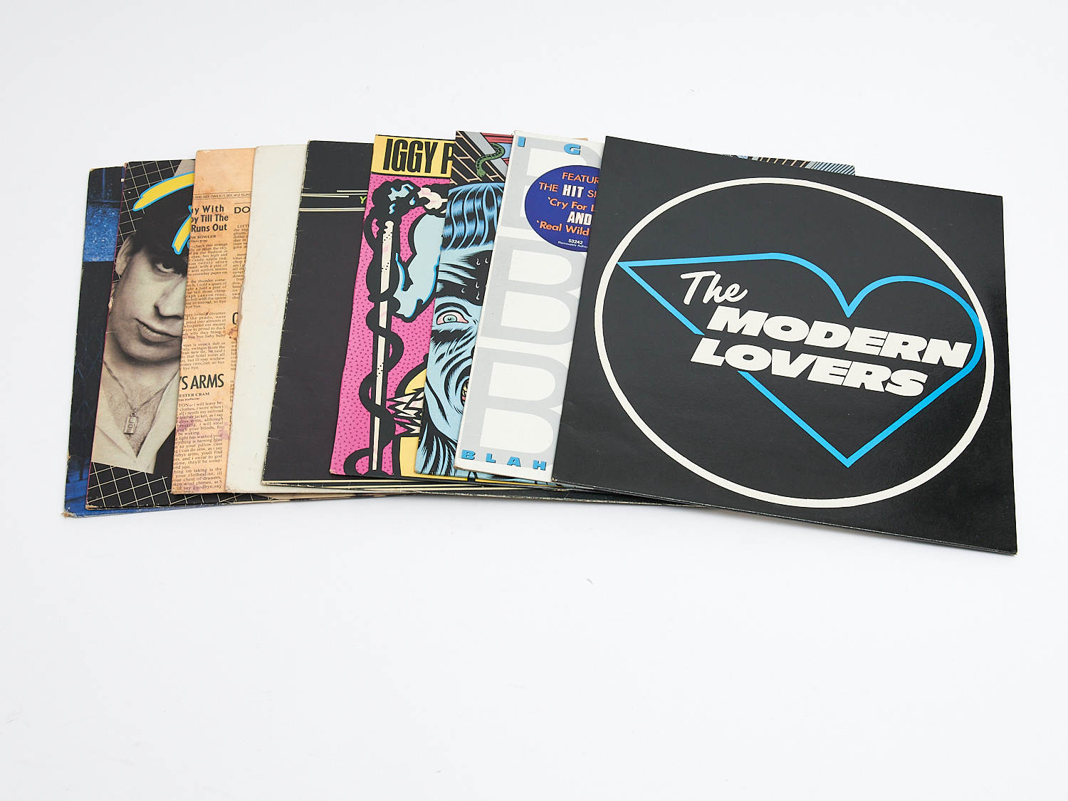 A SELECTION OF NINE LP RECORDS BY UNDERGROUND ROCK, PUNK AND NEW WAVE ARTSTS: VELVET UNDERGOURND, MODERN LOVERS, IGGY POP, TOM WAITS, BLONDIE, TOME VERLAINE AND THE DEAD BOYS, LEONARD JOEL LOCAL DELIVERY: MEDIUM