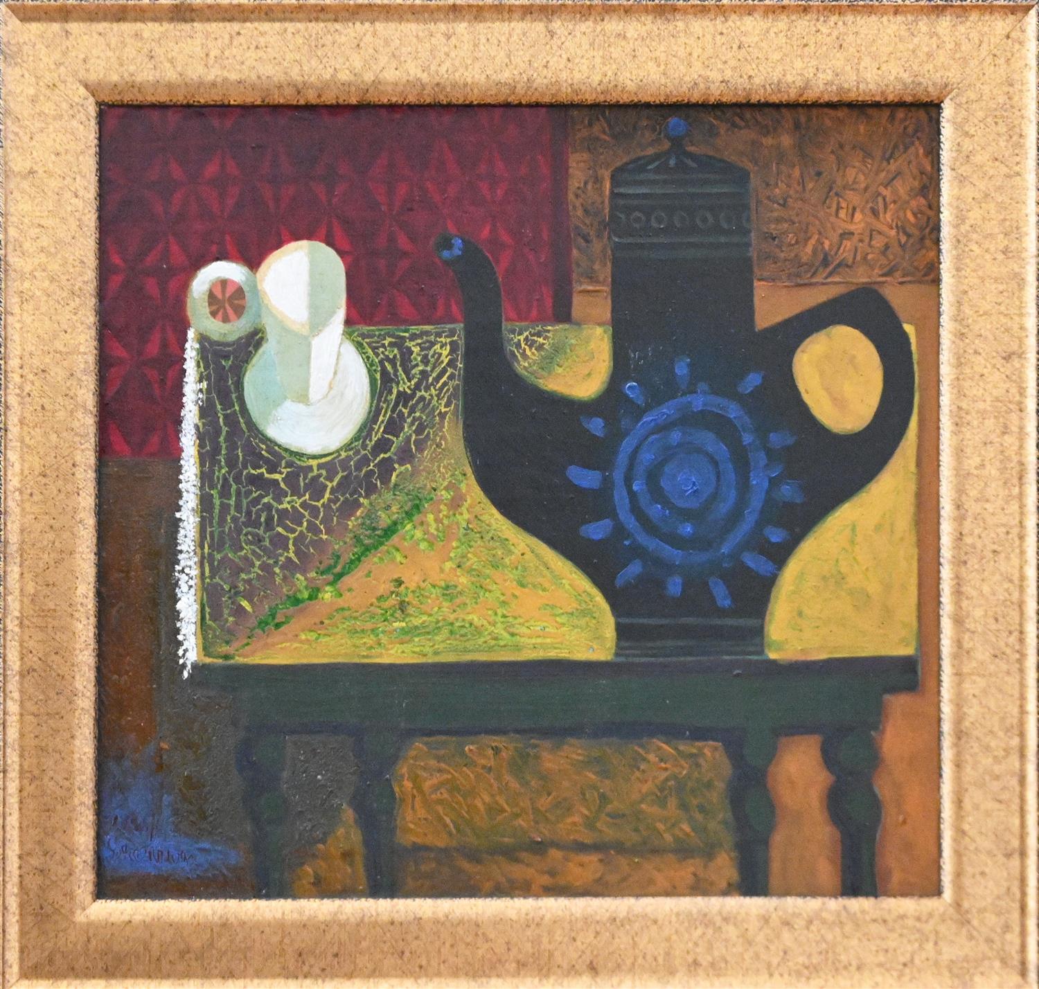 Overall good condition with minor cracking throughout. Small abrasion to upper right hand corner, resulting in minor paint loss.