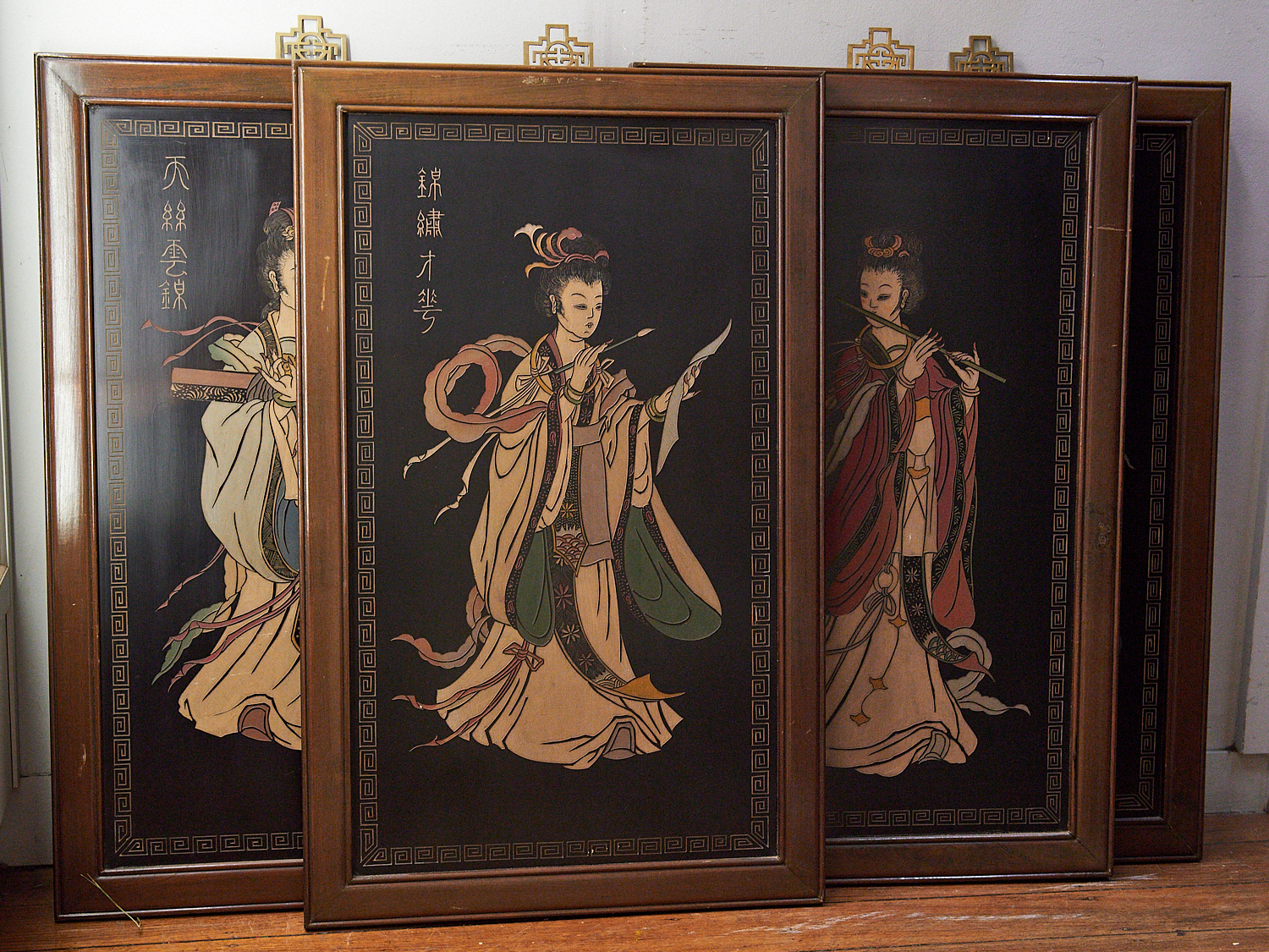 FOUR CHINESE COROMANDEL LACQUER PANELS, EACH DEPICTING A WOMAN IN ROBES H.87CM X W.54CM, LEONARD JOEL LOCAL DELIVERY: MEDIUM