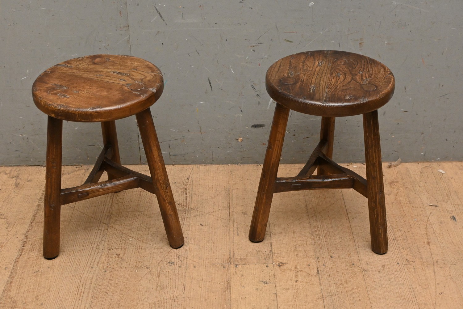 A PAIR OF FRENCH STYLE OAK MILKING STOOLS (H44 X D31 CM) (LEONARD JOEL DELIVERY SIZE: LARGE)