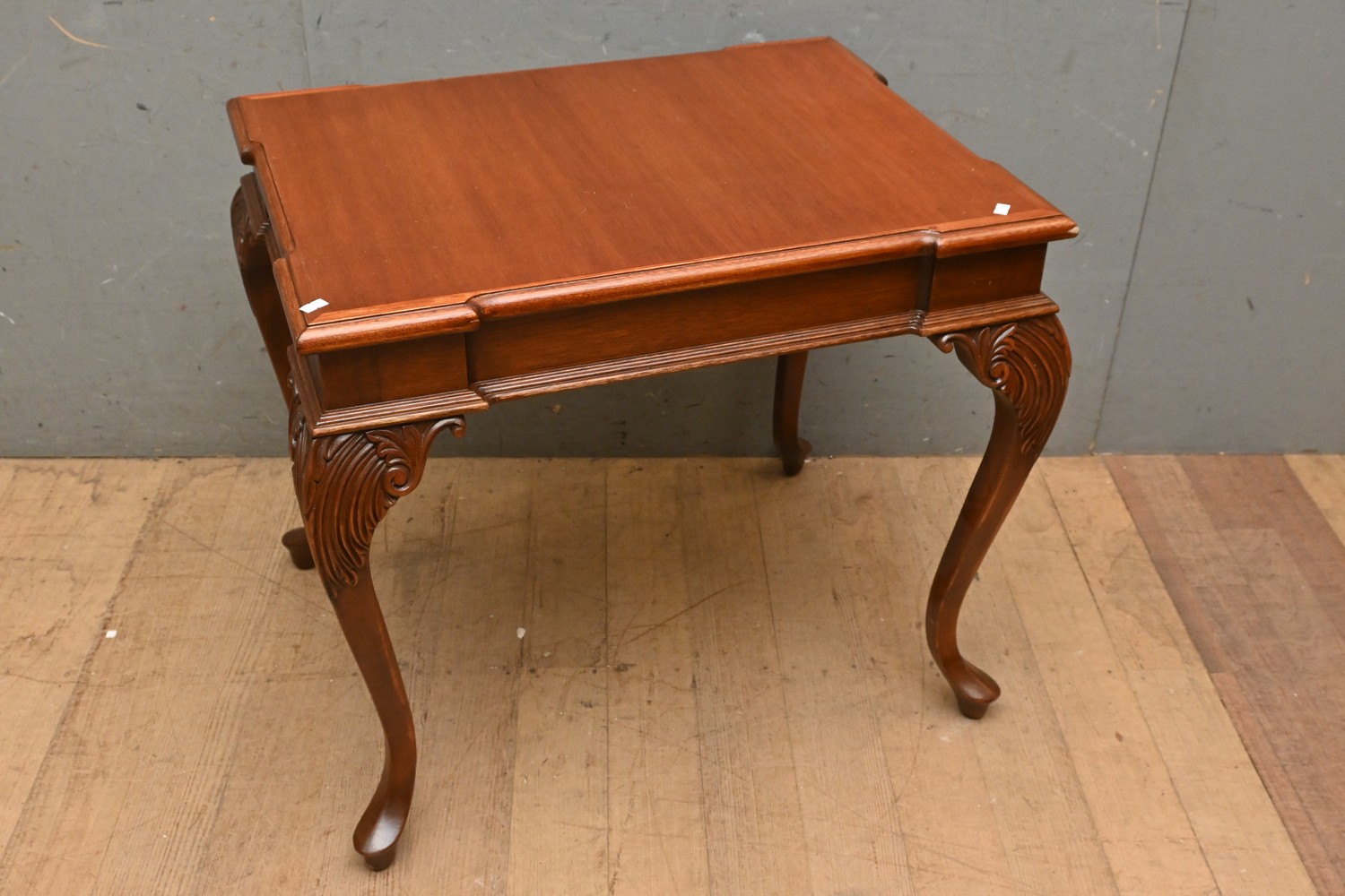 A CARVED TIMBER COFFEE TABLE ON CABRIOLE LEGS (A/F) ( 66H X 76W X 59D CM) (LEONARD JOEL DELIVERY SIZE: LARGE)