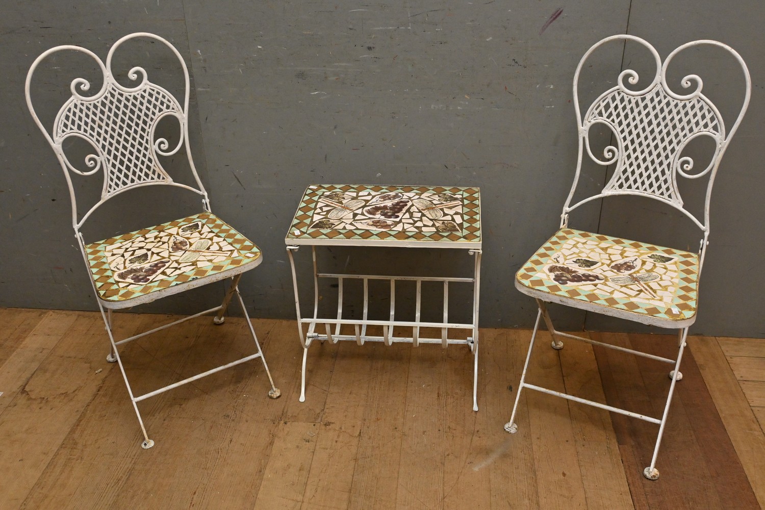 A THREE PIECE OUTDOOR PATIO SETTING (A/F) (CHAIR 91H X 39W X 42D CM) (LEONARD JOEL DELIVERY SIZE: LARGE)