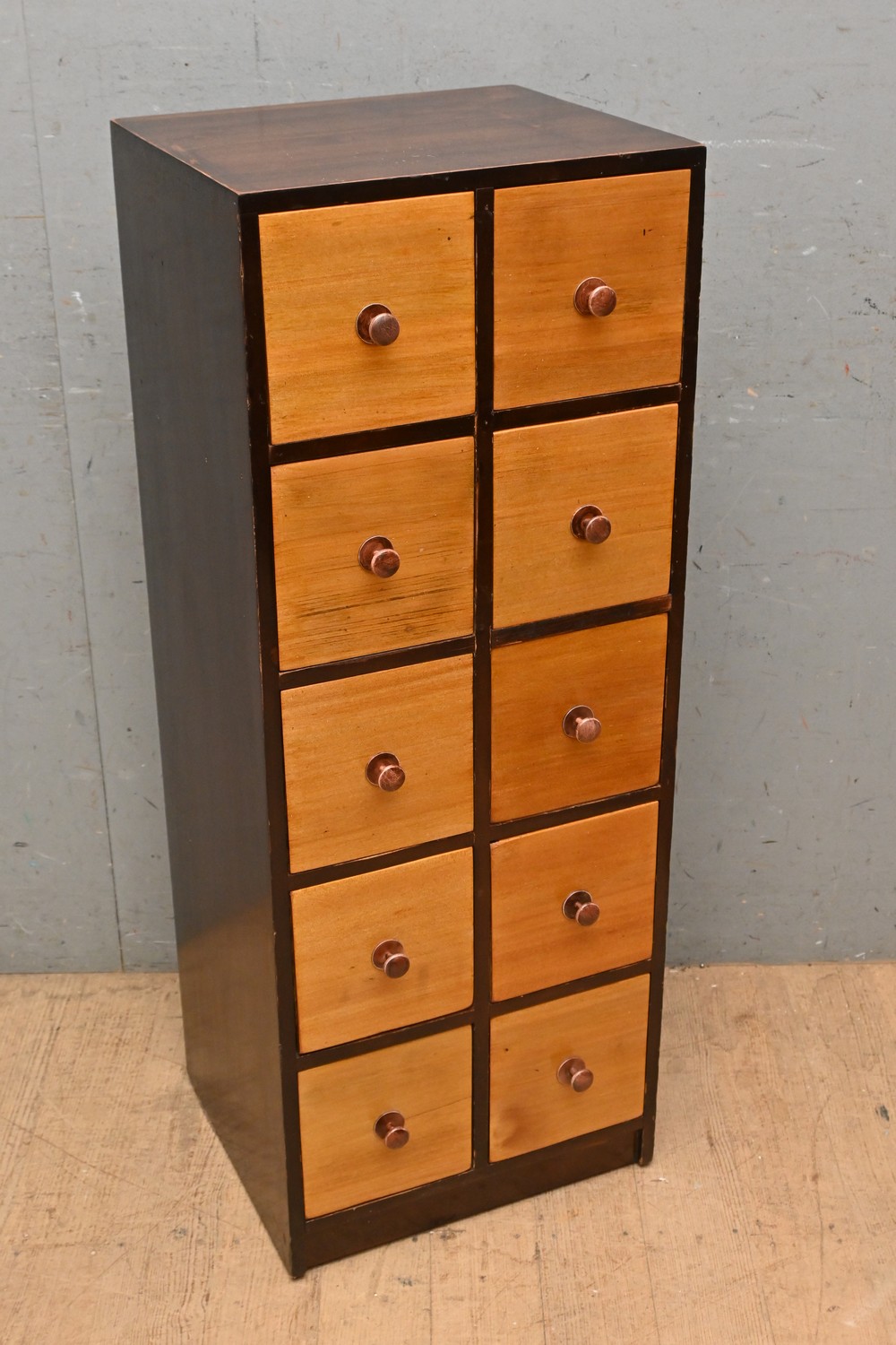 A MID-CENTURY TEN DRAWER PIDGEON HOLE UNIT (A/F) ( 105H X 40W X 37D CM) (LEONARD JOEL DELIVERY SIZE: LARGE)