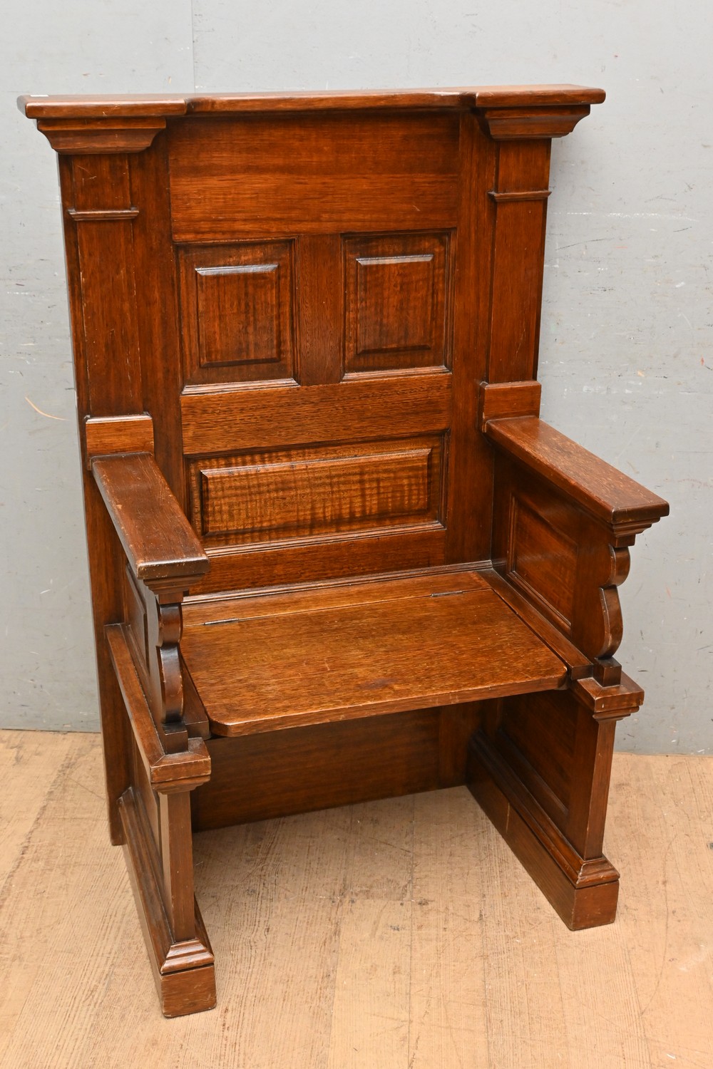 AN ANTIQUE HARDWOOD HALL CHAIR (A/F) ( 119H X 81W X 46D CM) (PLEASE NOTE THIS HEAVY ITEM MUST BE REMOVED BY CARRIERS AT THE CUSTOMER'S EXPENSE. LEONARD JOEL STAFF CANNOT ASSIST CARRYING THIS ITEM) (X-LARGE ITEM)