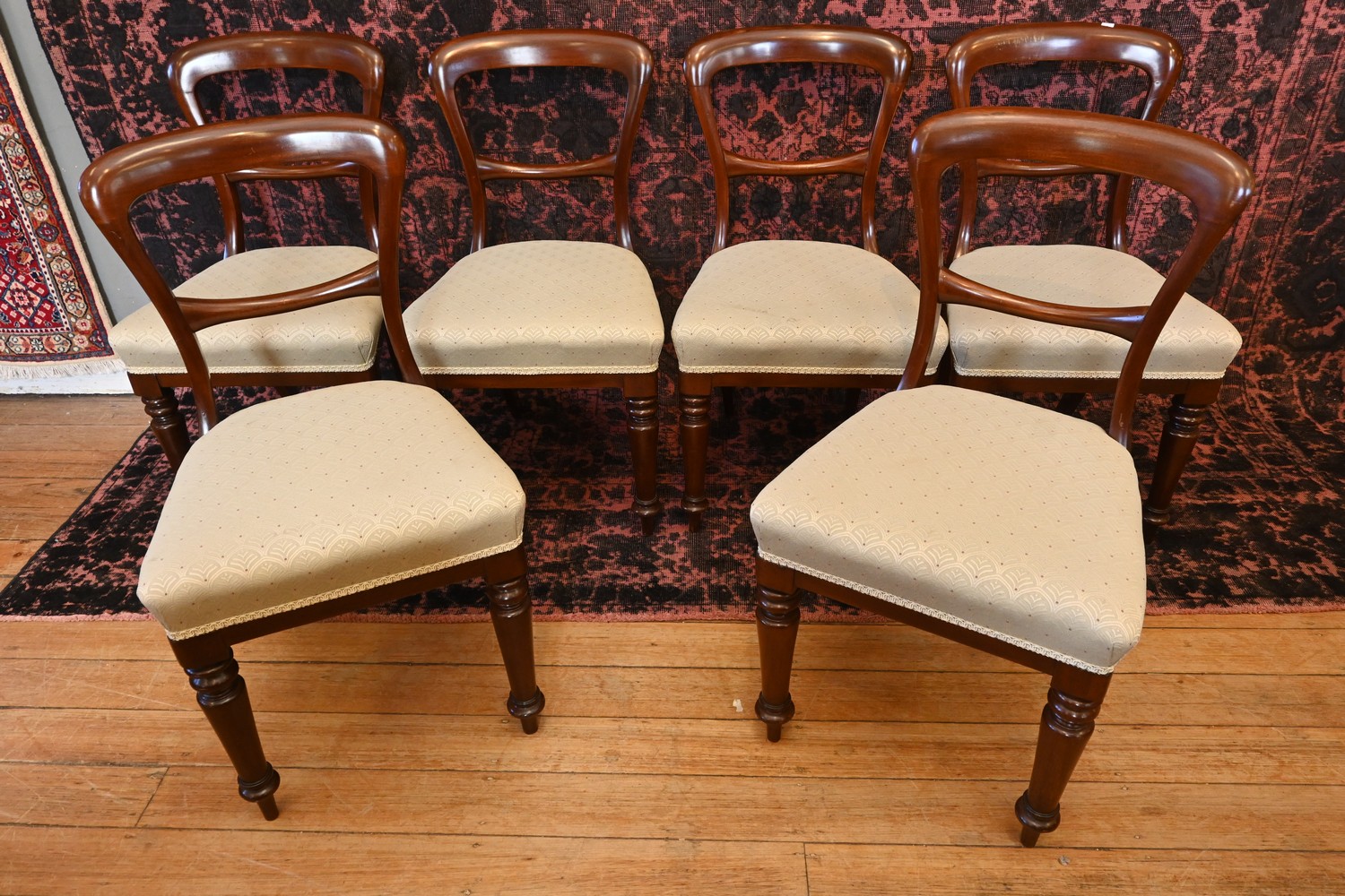 A SET OF SIX VICTORIAN DINING CHAIRS (A/F) (H85 X W49 X D55 CM) (LEONARD JOEL DELIVERY SIZE: X-LARGE)