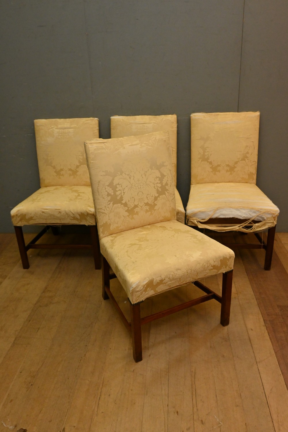 A SET OF FOUR ANTIQUE DINING CHIARS ( A/F) (NEED RE-UPHOLSTERY ) ( 103H X 63W X 69D CM) (LEONARD JOEL DELIVERY SIZE: X-LARGE)