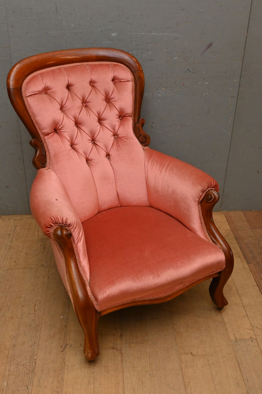 A VICTORIAN BUTTON BACK GENTLEMAN'S CHAIR (A/F) ( 94H X 70W X 85D CM) (LEONARD JOEL DELIVERY SIZE: X-LARGE)