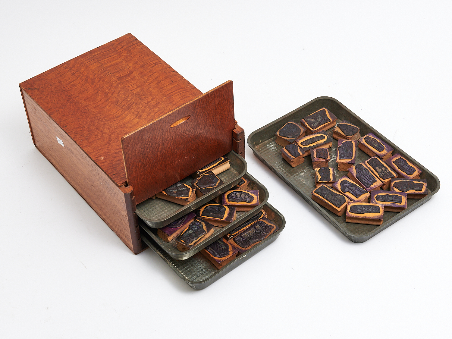 A LARGE COLLECTION OF AUSTRALIAN MADE WOODEN AND RUBBER PICTURE AND PROJECT STAMPS IN TWO TIER CASE, H.13CM X W.42CM X D.22CM, LEONARD JOEL LOCAL DELIVERY: MEDIUM