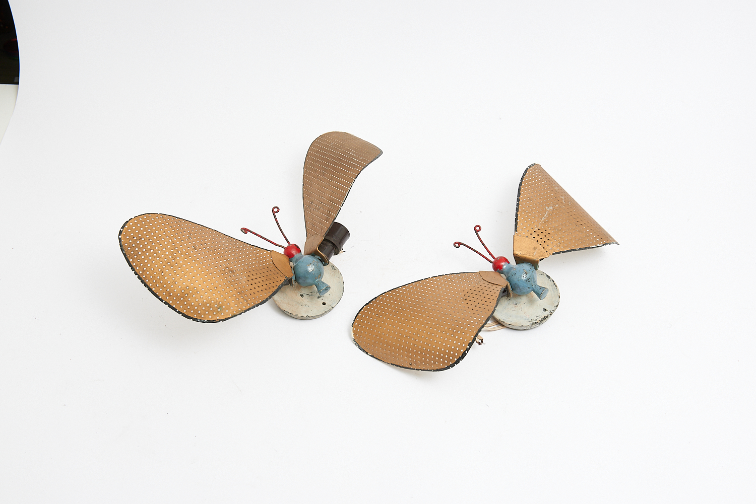 AN UNUSUAL PAIR OF VINTAGE BUTTERFLY FORM METAL WALL MOUNT LIGHTS, W.40CM, LEONARD JOEL LOCAL DELIVERY: MEDIUM
