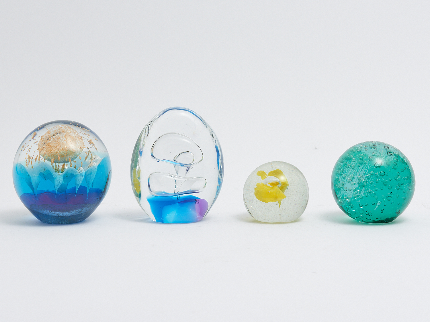 FOUR VINTAGE ART GLASS PAPERWEIGHTS, H.12CM, LEONARD JOEL LOCAL DELIVERY: SMALL