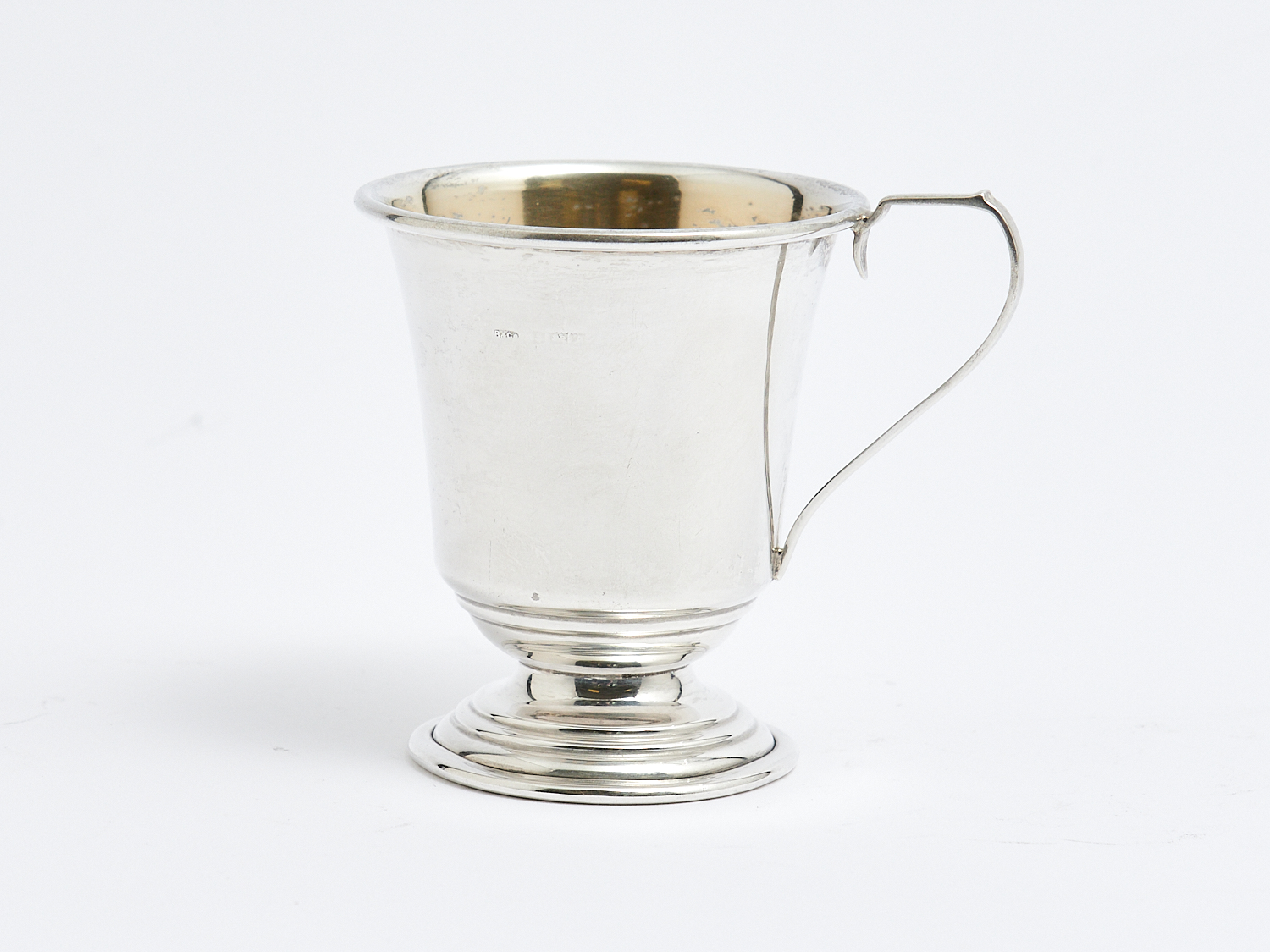 A STERLING SILVER HANDLED MUG – 50 GRAMS, H.8CM, LEONARD JOEL LOCAL DELIVERY: SMALL