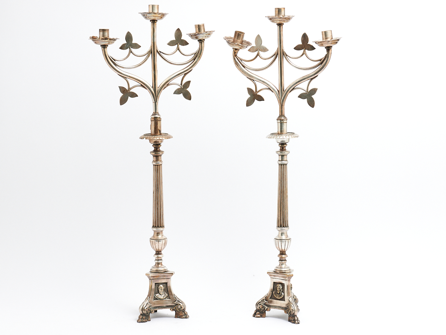 A PAIR OF FRENCH SILVERED METAL THREE SCONCE CANDELABRA, H.72CM, LEONARD JOEL LOCAL DELIVERY: MEDIUM