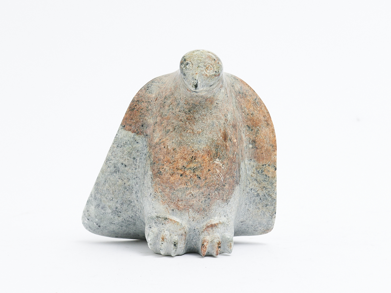 AN INUIT SIGNED STONE PENGUIN FIGURE, H.13CM, LEONARD JOEL LOCAL DELIVERY: SMALL