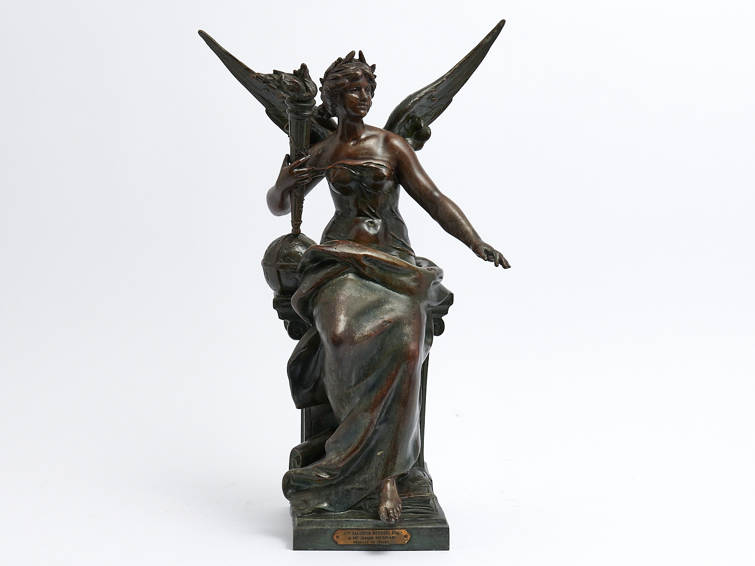 A FRENCH BRONZED SPELTER FIGURE OF A WINGED MAIDEN AFTER LOUIS MOREAU H.52CM, LEONARD JOEL LOCAL DELIVERY: MEDIUM
